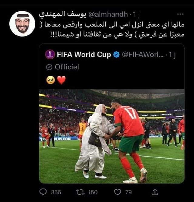 إن هاته الفتاوي المرضية التي عممها بعض أشباه فقهاء الضلالة بالعالم الأزرق تحن لزمن وأد البنات واسترقاق النساء، حيث وجهوا كلاما جارحا لبوفال وأمه وهما يرقصان بفرح طفولي في قمة الروعة الإنسانية، بعد الإنجاز التاريخي للمنتخب المغربي.
