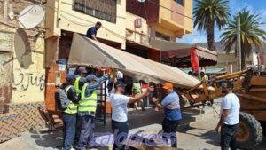 وتمحورت الحملة أساسًا حول إزالة “البيشان” والاعمدات غير القانونية التي تعمد العديد من أرباب المقاهي والمحلات التجارية إلى وضعها على الأرصفة والفضاءات العامة، مما يعيق حركة السير والجولان ويخل بجمالية المدينة .
