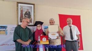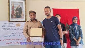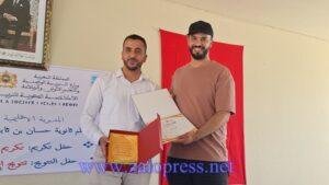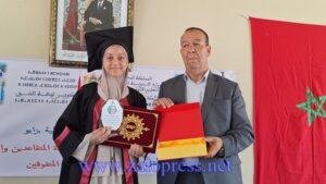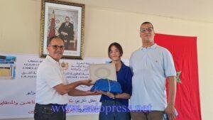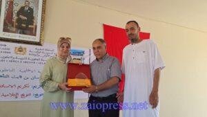 كما تم تكريم الأستاذ الحسين أقليد، أحد أعلام “الزمن الجميل” في سلك التدريس، وذلك اعترافاً بإسهاماته القيمة في الحقل التربوي، وما تركه من أثر طيب في نفوس تلامذته وزملائه على حد سواء .