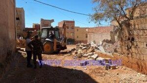 وقد تمت العملية بحضور ممثلي السلطة المحلية والقوات المساعدة وأعوان السلطة، إلى جانب جرافة تابعة لجماعة زايو التي تكفلت بتنفيذ عملية الهدم .