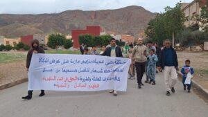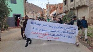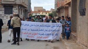 وانطلقت المسيرة من داخل الحي، بمشاركة رجال ونساء وشباب، حيث رفع المحتجون لافتات ورددوا شعارات تطالب بتوفير أبسط الخدمات الأساسية، وعلى رأسها الربط بالماء الصالح للشرب، والكهرباء، وشبكة التطهير السائل، إضافة إلى فك العزلة وتحقيق تنمية محلية عادلة تُنهي سنوات من التهميش .