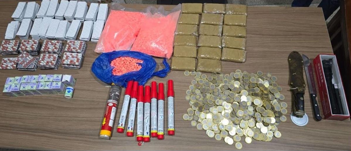 كما مكنت عملية التفتيش المنجزة من حجز صاعق كهربائي وسلاحين أبيضين، إلى جانب سبع شهب اصطناعية ودراجة نارية يُشتبه في استعمالها لتسهيل عمليات الترويج والتنقل .