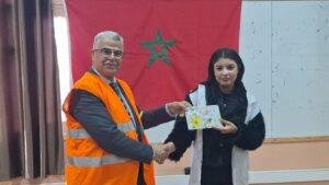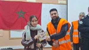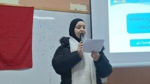 وقد قامت التلميذة مروى لمريني بتسيير برنامج النشاط التحسيسي المبرمج بمناسبة اليوم الوطني للسلامة الطرقية .