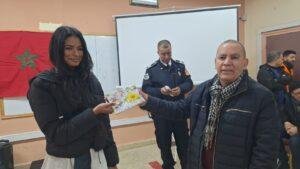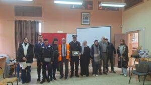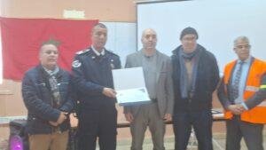واختُتم النشاط بفقرة تفاعلية تم خلالها طرح أسئلة على التلاميذ في مجال السلامة الطرقية وقانون السير، عرفت تجاوبًا ملحوظًا، قبل أن تقوم إدارة المؤسسة بتقديم شواهد تقديرية لكل من ضابط الأمن السيد محمد حيدة، ومفتش الشرطة السيد محمد الطيار، ورئيس الجمعية السيد الطيب هاملي، اعترافًا بمجهوداتهم القيمة في مجال التوعية والتحسيس .