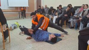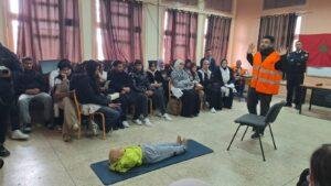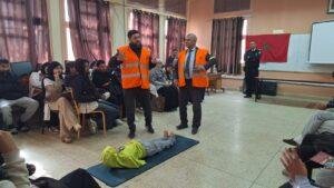 وفي السياق ذاته، أطر عضو المكتب السيد عبد اللطيف رحو ورشة تطبيقية في مجال الإسعافات الأولية، عرفت تفاعلًا كبيرًا من طرف التلميذات والتلاميذ، حيث تم شرح كيفية التعامل مع الحالات المستعجلة بشكل مبسط وعملي، بما يعزز ثقافة التدخل الإيجابي والمسؤول في حالة وقوع حادث .